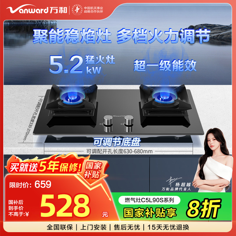 万和 5.2kW大火力多重防护节能燃气灶C5L90S(天然气,液化气)