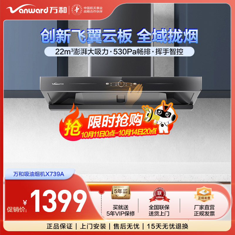 万和 22m³大吸力挥手智控一键热清洗低噪抽油烟机CXW-380-X739A