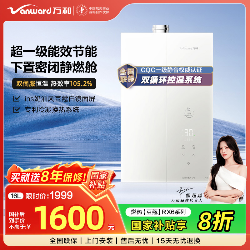 万和 16L 一级节能静音恒温密闭稳燃舱燃气热水器豆蔻系列JSLQ27-16RX6-12T(天然气)