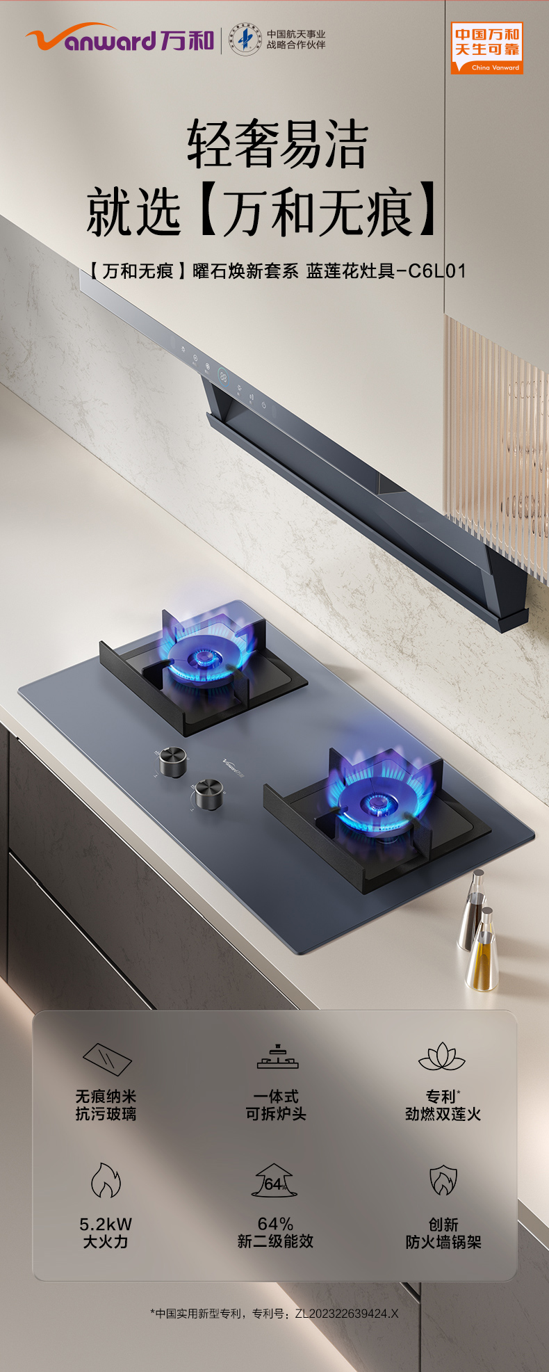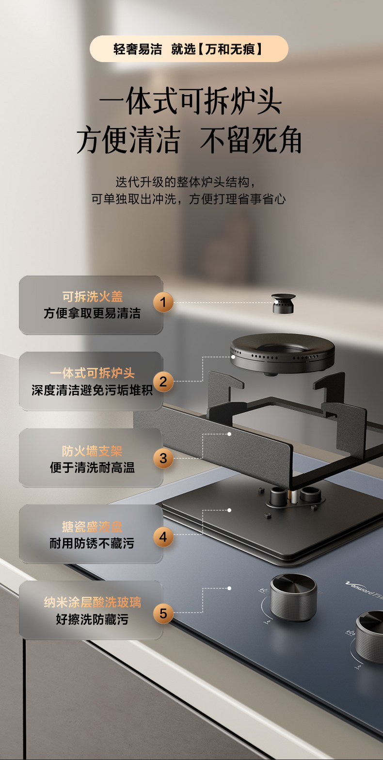 万和 5.2kW超一级节能猛火易洁净秒速点火燃气灶G6-L50(天然气,液化气)