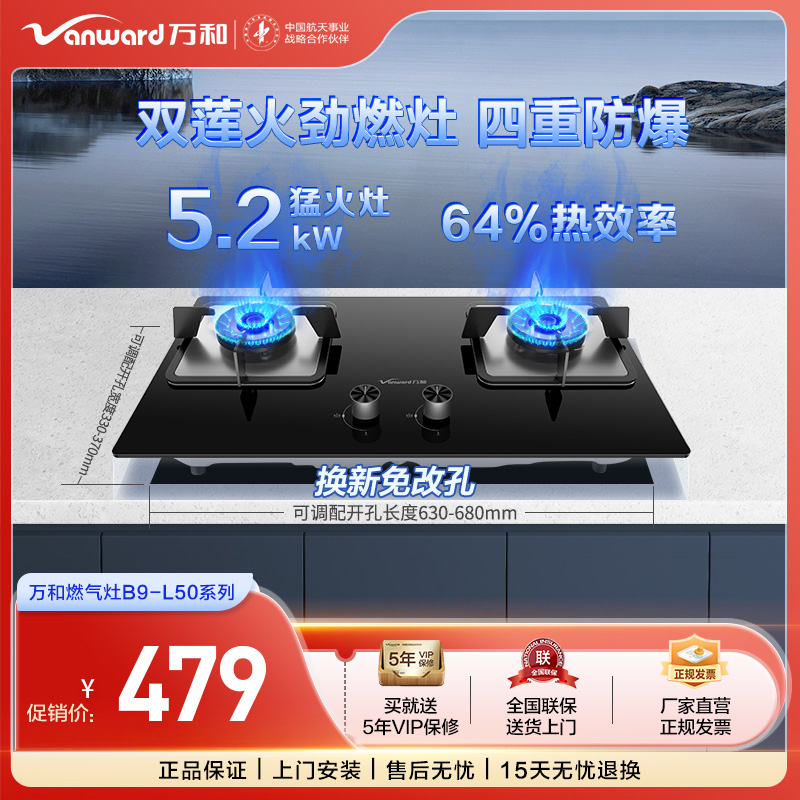 万和 5.2KW大火力双灶高热效易清洁双莲火燃气灶B9L50(天然气,液化气)