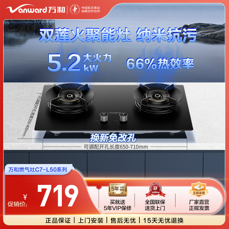 万和 5.2kW大火力高热效纳米抗污双灶双莲火聚能燃气灶C7L50(天然气,液化气)