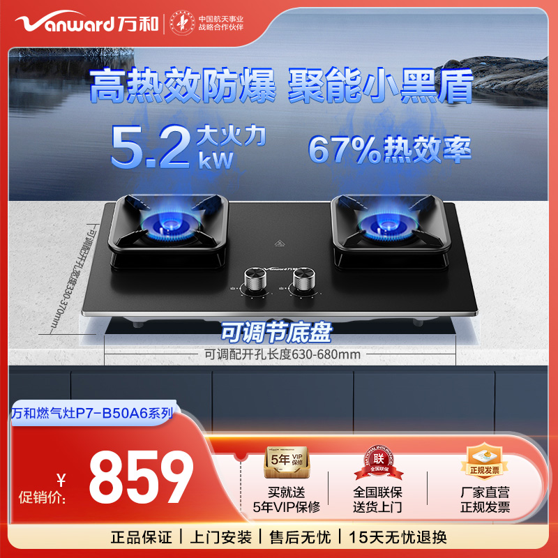 万和 5.2kW大火力高热效防爆聚能小黑盾双莲火燃气灶JZT-P7B50A6(天然气)