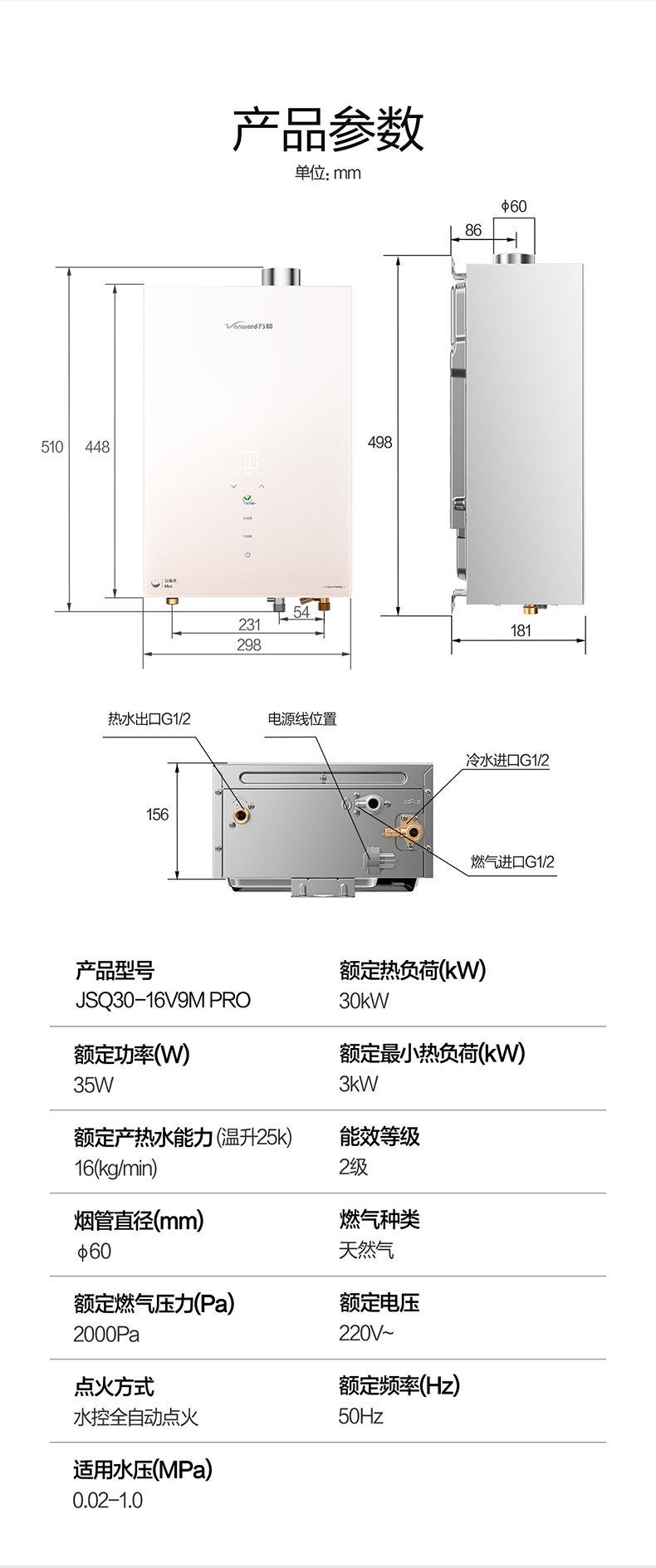 万和 12L/13L 家用节能智控净浴平衡机WE3W系列(天然气,液化气)