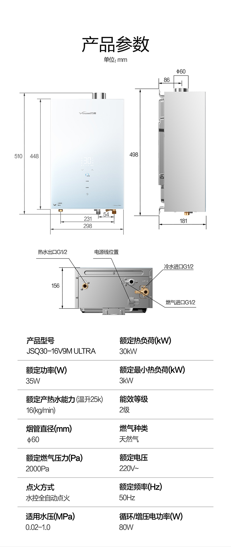 万和 12L/13L 家用节能智控净浴平衡机WE3W系列(天然气,液化气)
