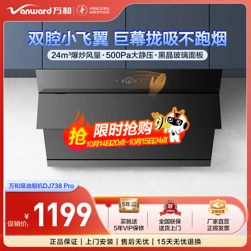 万和小双翼24m经典侧吸500pa高静压抽油烟机CXW-310-DJ738-Pro