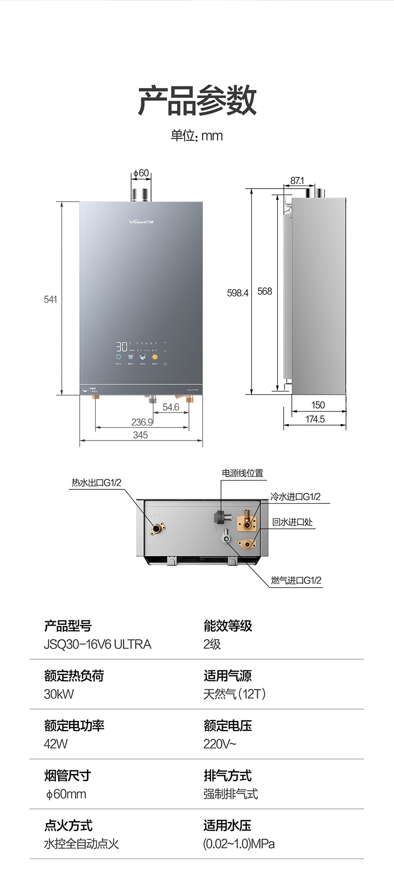 万和 16L智能四重防冻低噪直流节能热水器JSQ30-565W16(天然气)