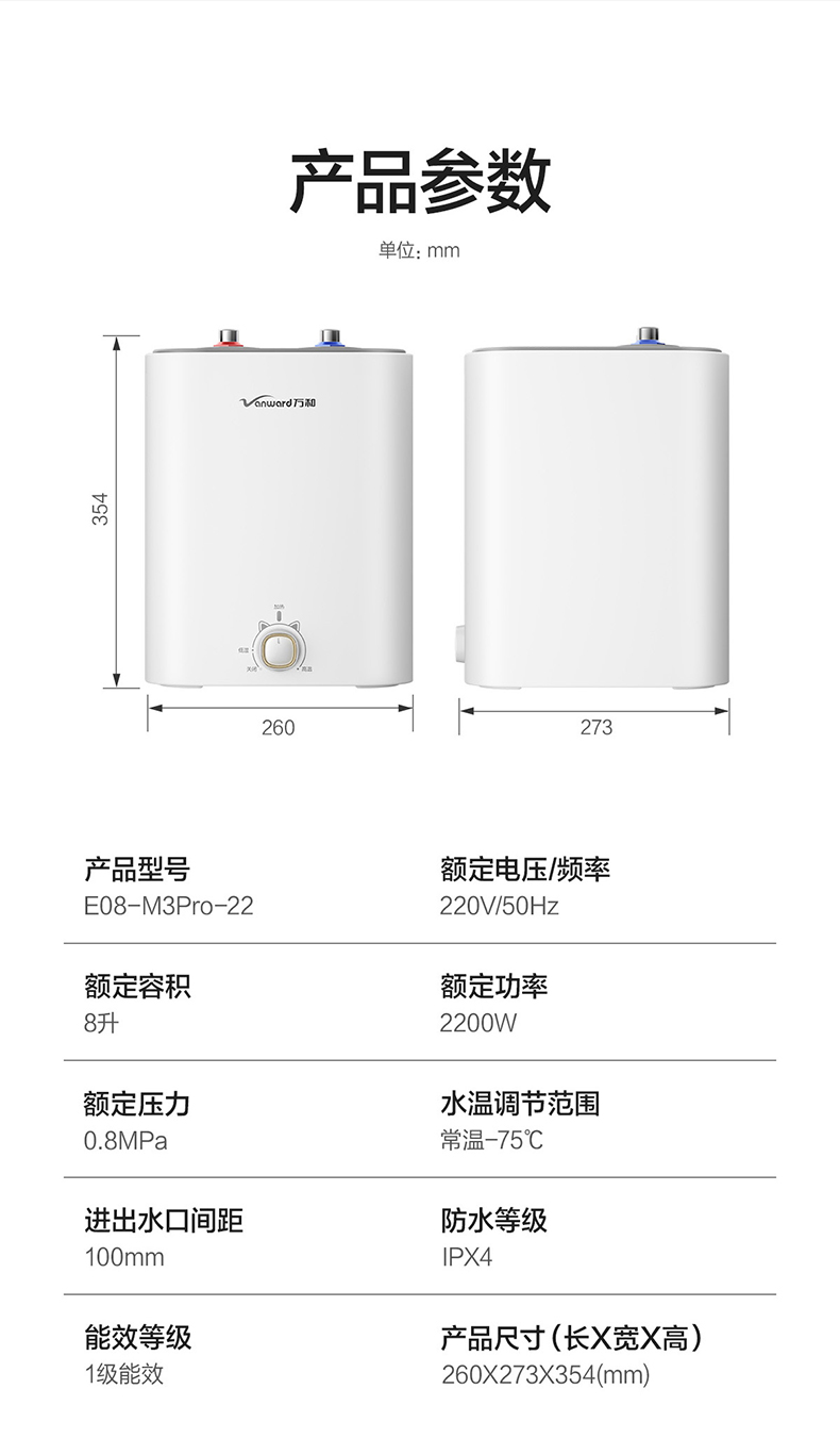 万和 80L 出水断电六重净浴一级能效云互联电热水器E80-Q8D-30