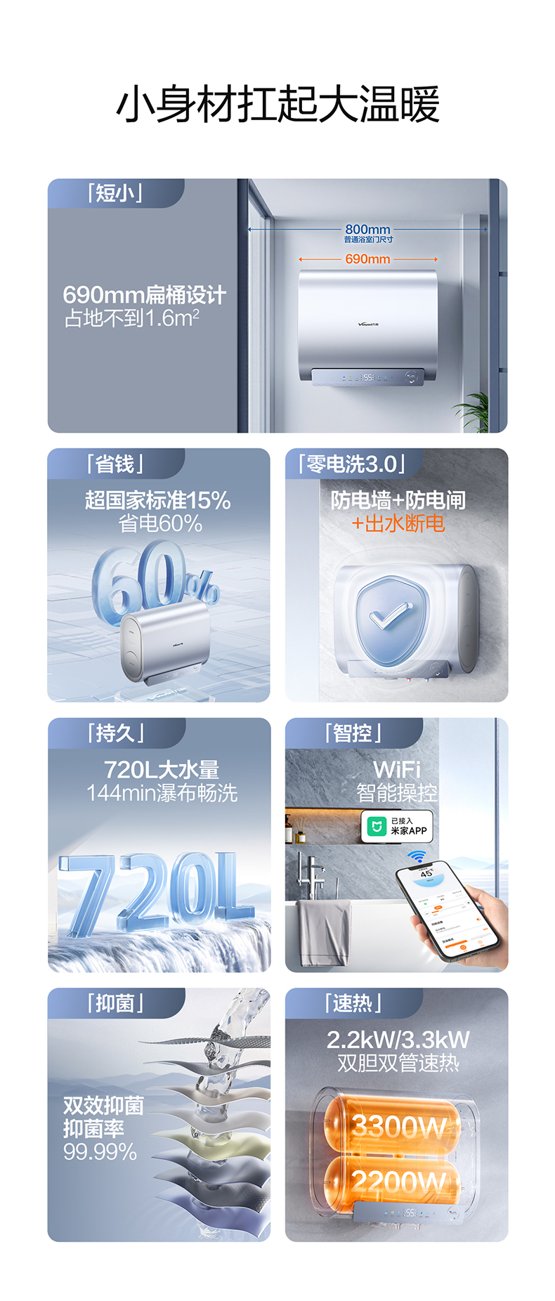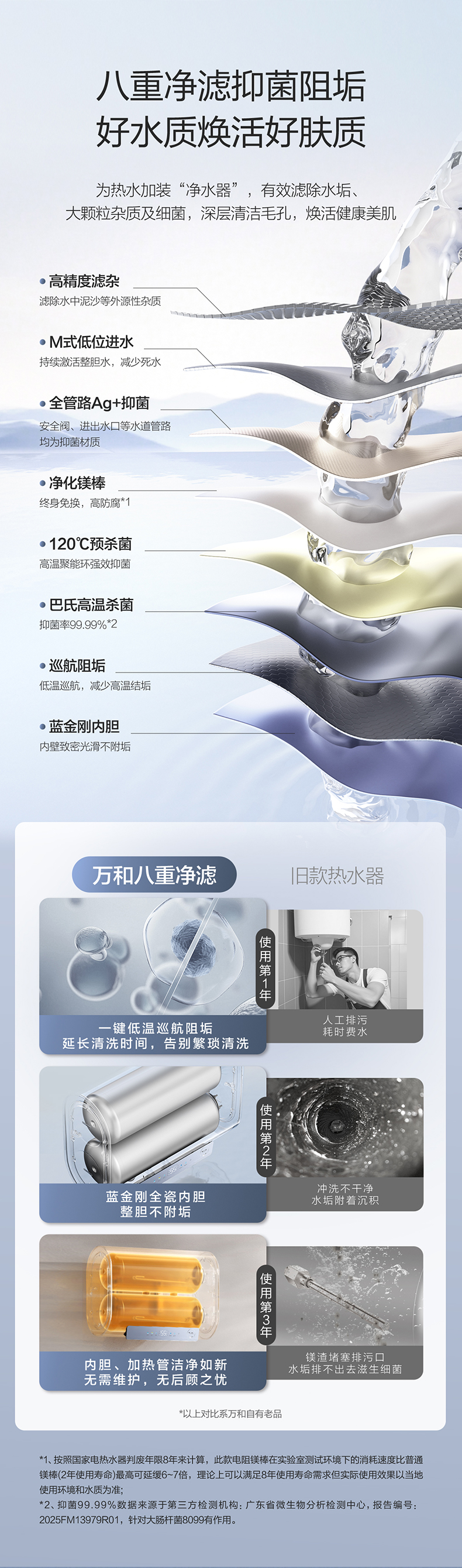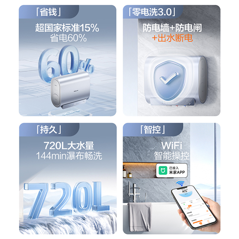 万和 50L/60L 出水断电六重净浴一级能效云互联电热水器Q8D系列