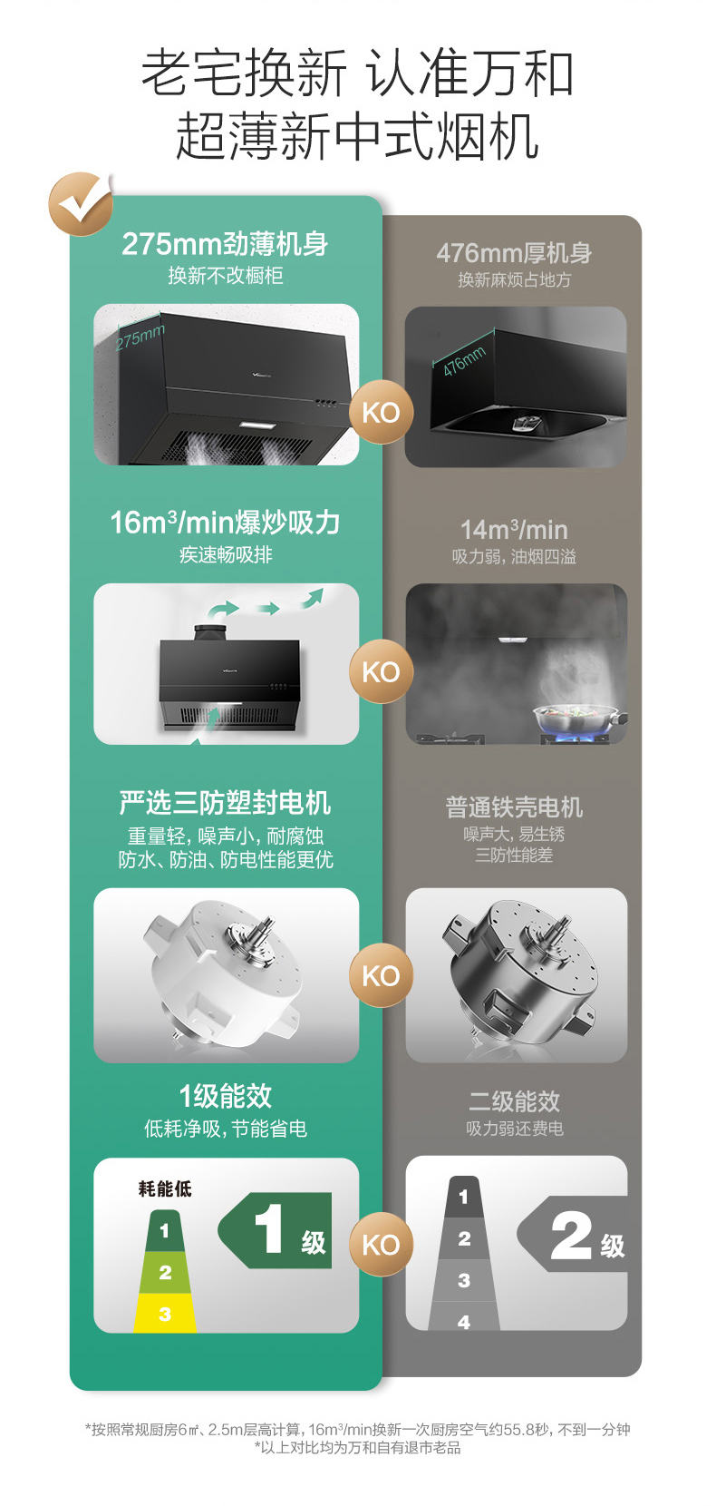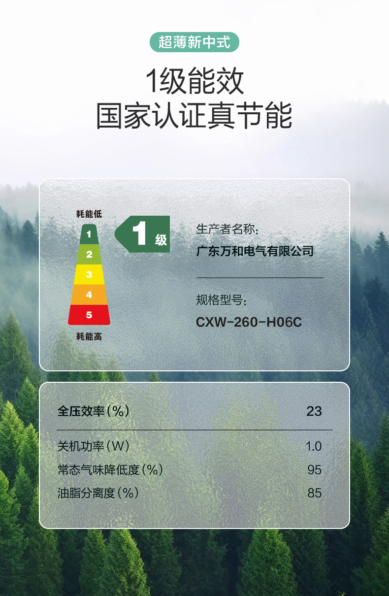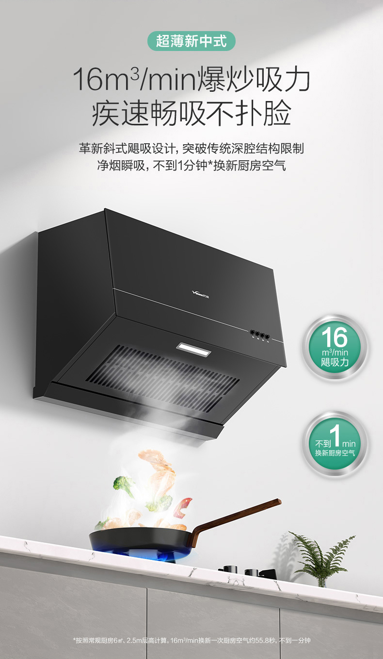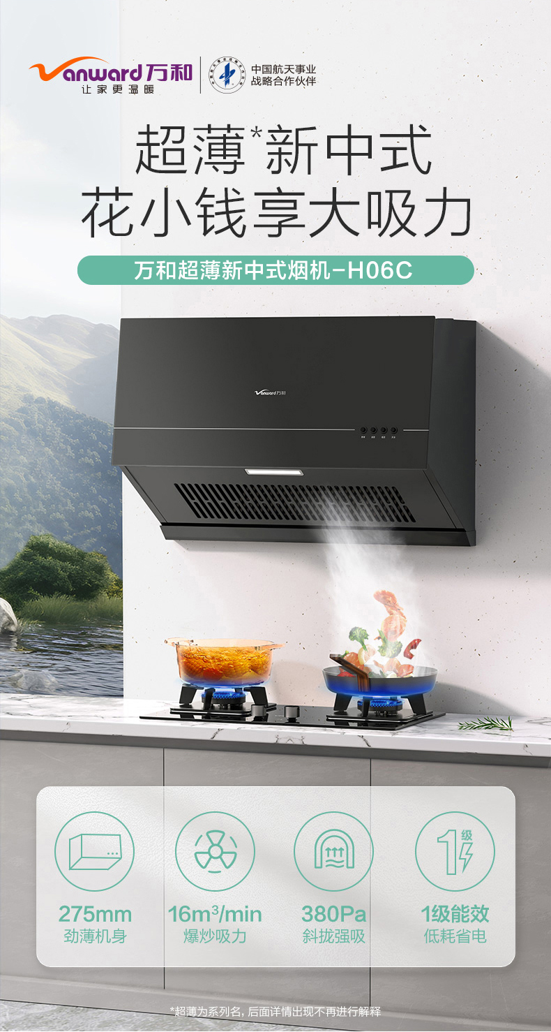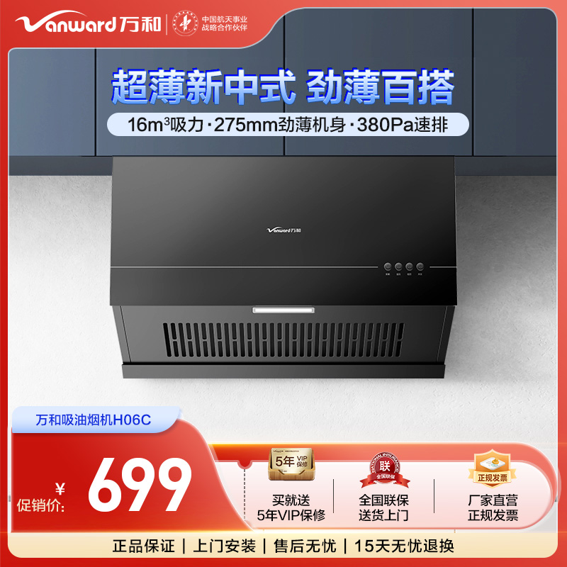 万和 16m3/min爆炒吸力超薄新中式速排劲抽油烟机 CXW-260-H06C