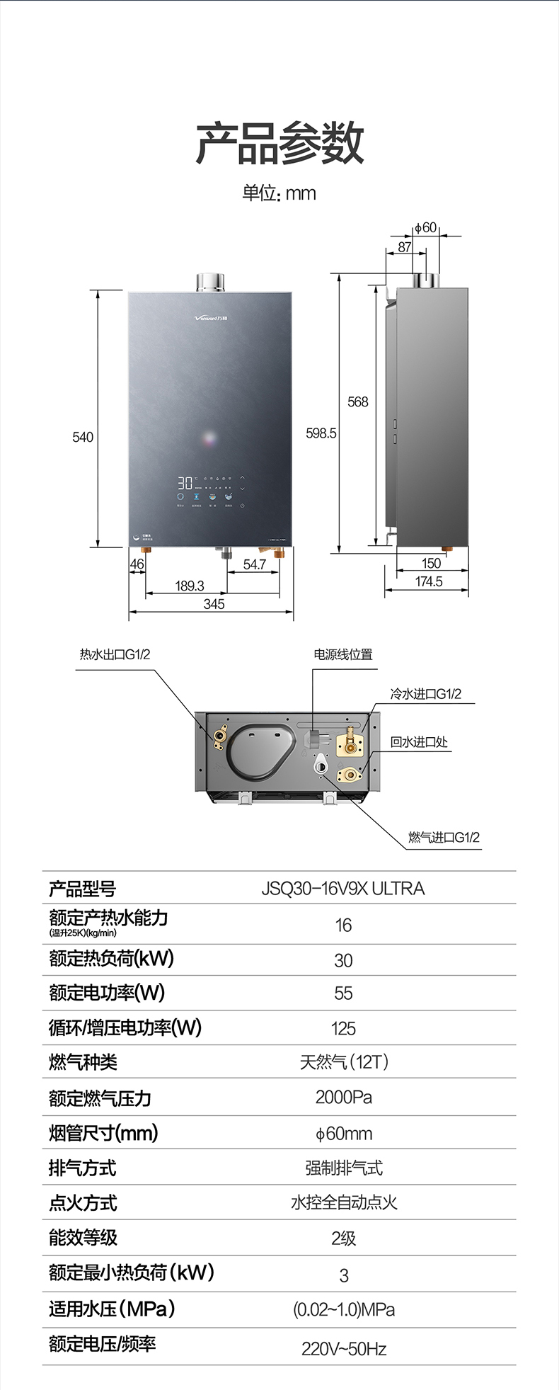万和 16L智能四重防冻低噪直流节能热水器JSQ30-565W16(天然气)