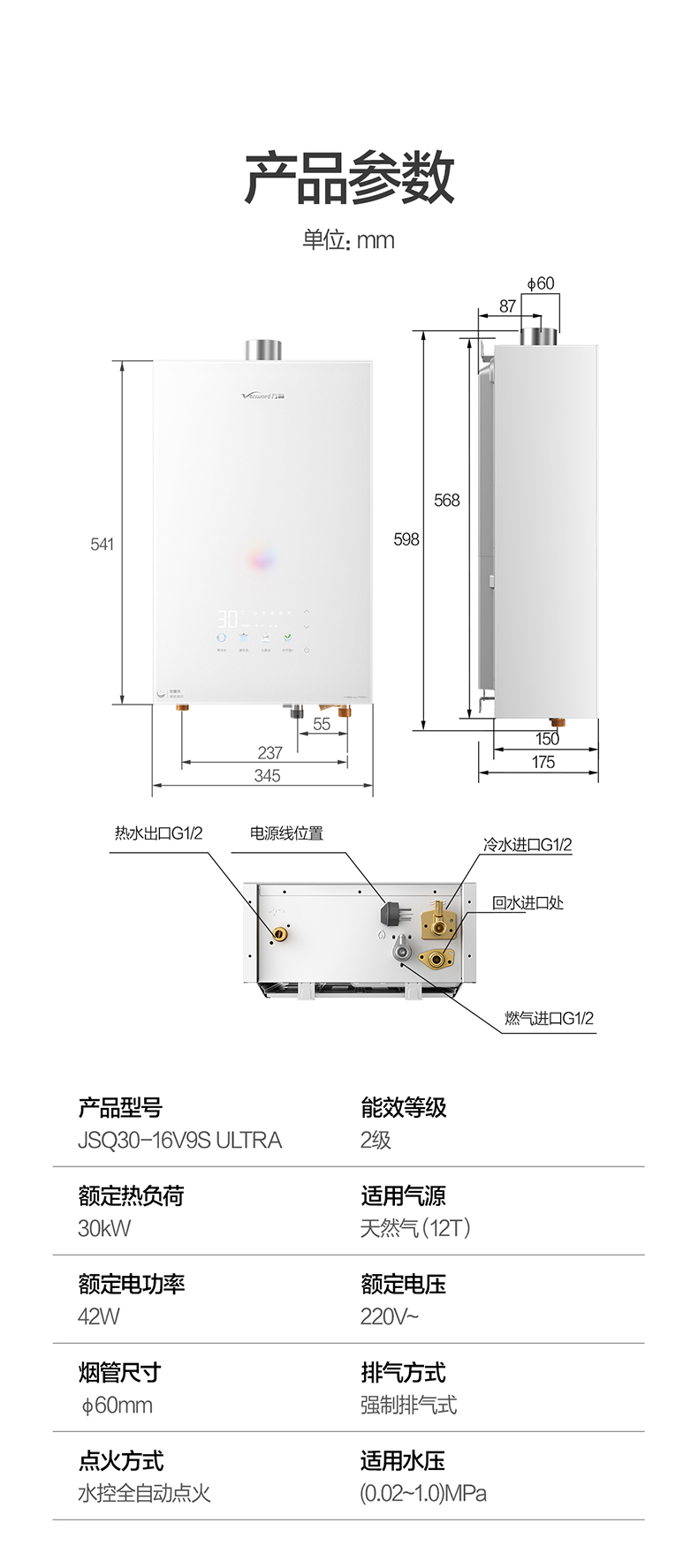 万和 16L智能四重防冻低噪直流节能热水器JSQ30-565W16(天然气)