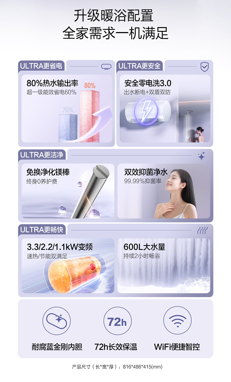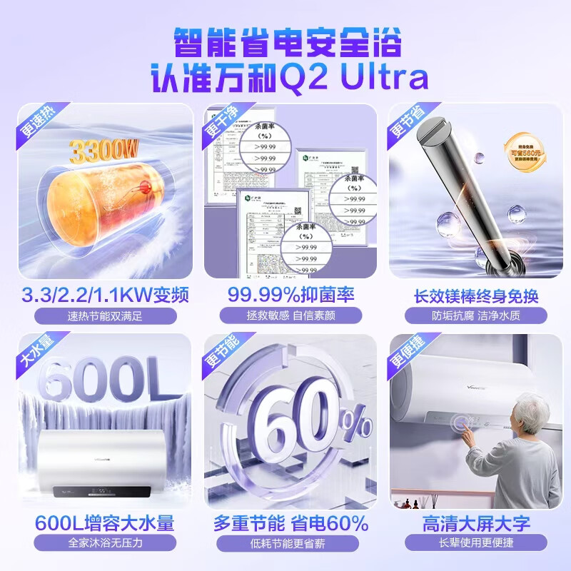 万和 50L/60L 出水断电六重净浴一级能效云互联电热水器Q8D系列