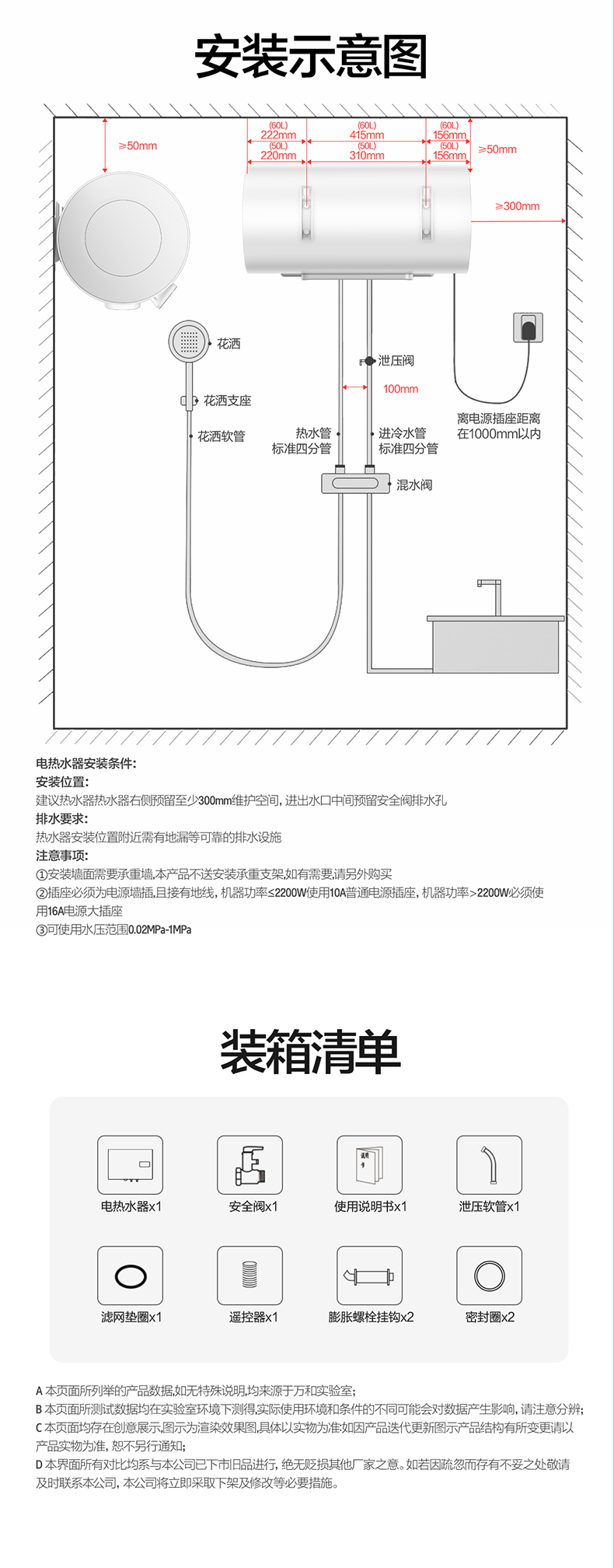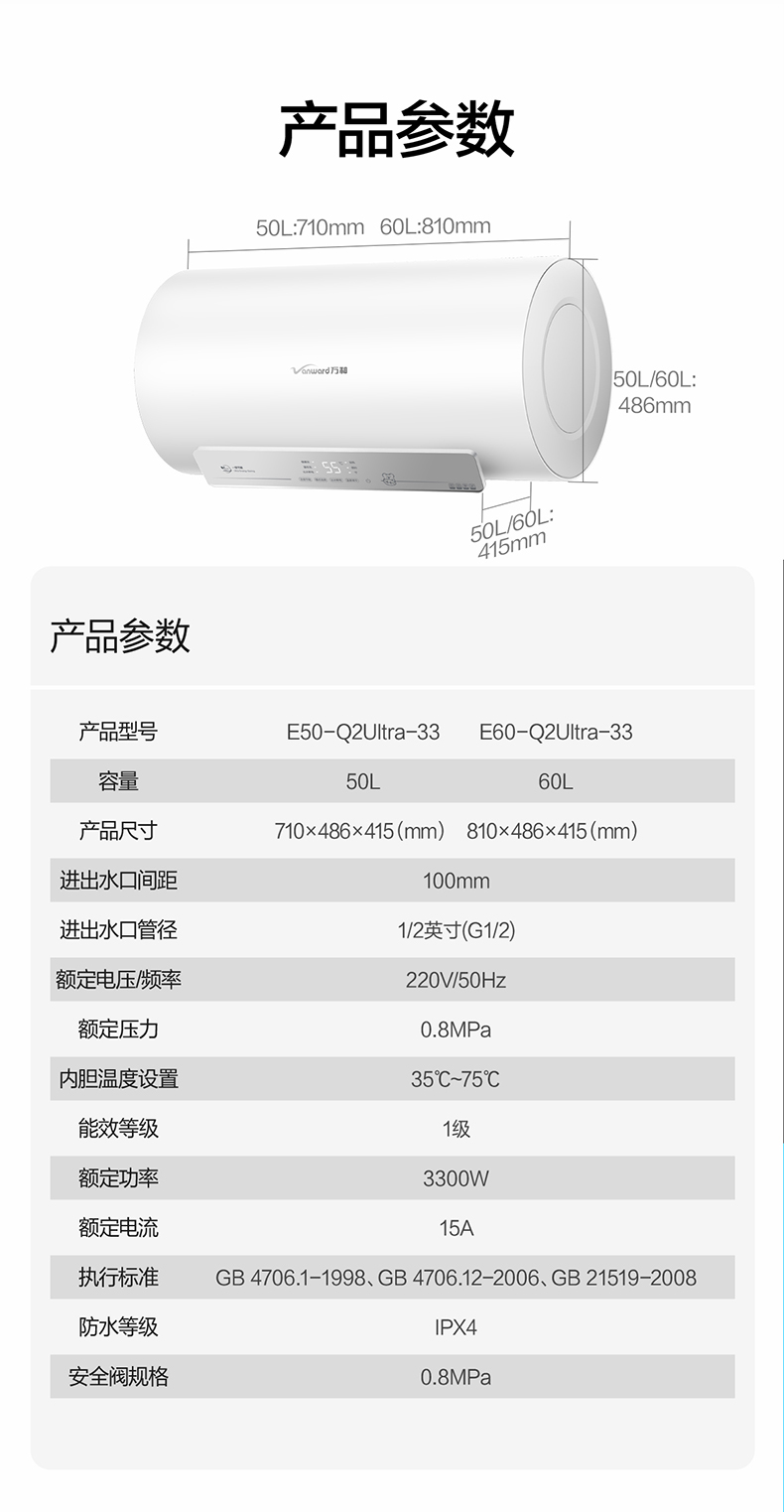 万和 50L/60L 自动断电一键预约洗电热水器Q2TY10系列