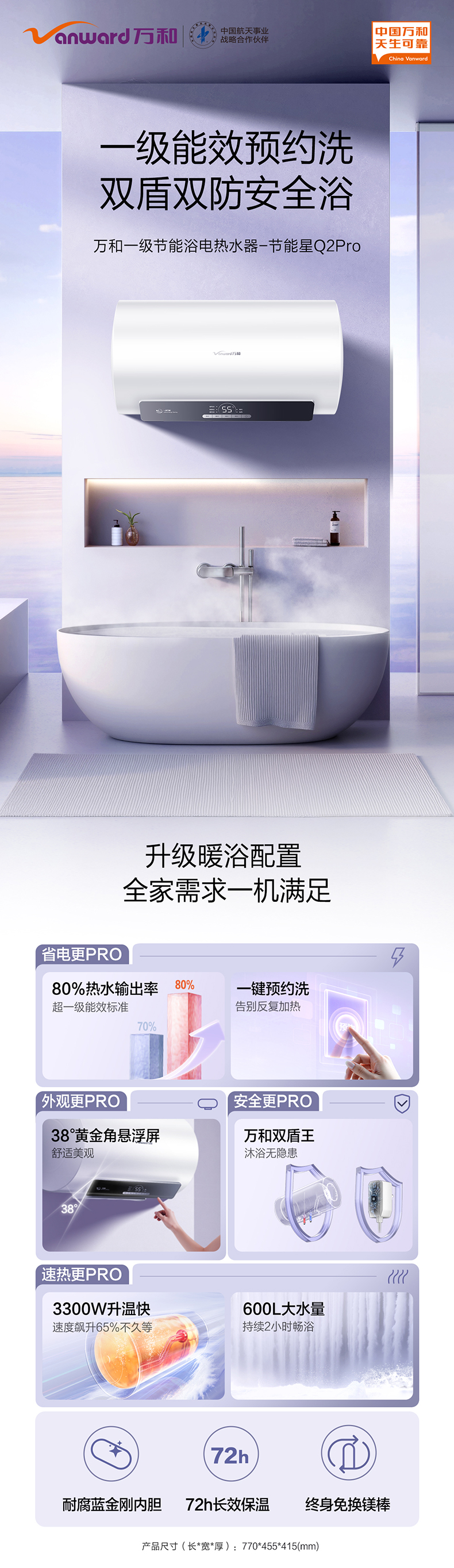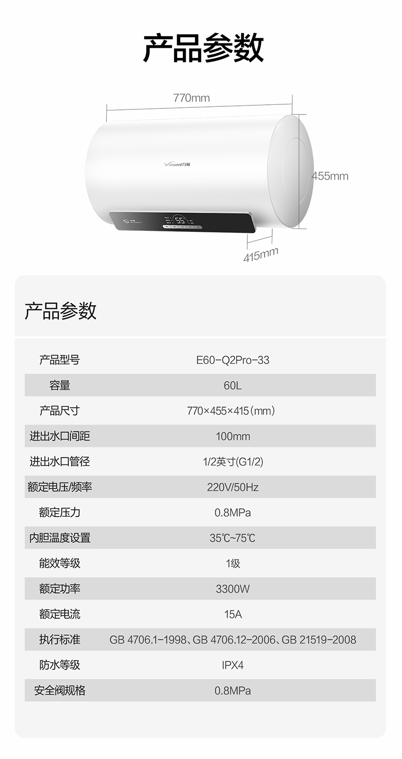 万和 50L/60L 自动断电一键预约洗电热水器Q2TY10系列