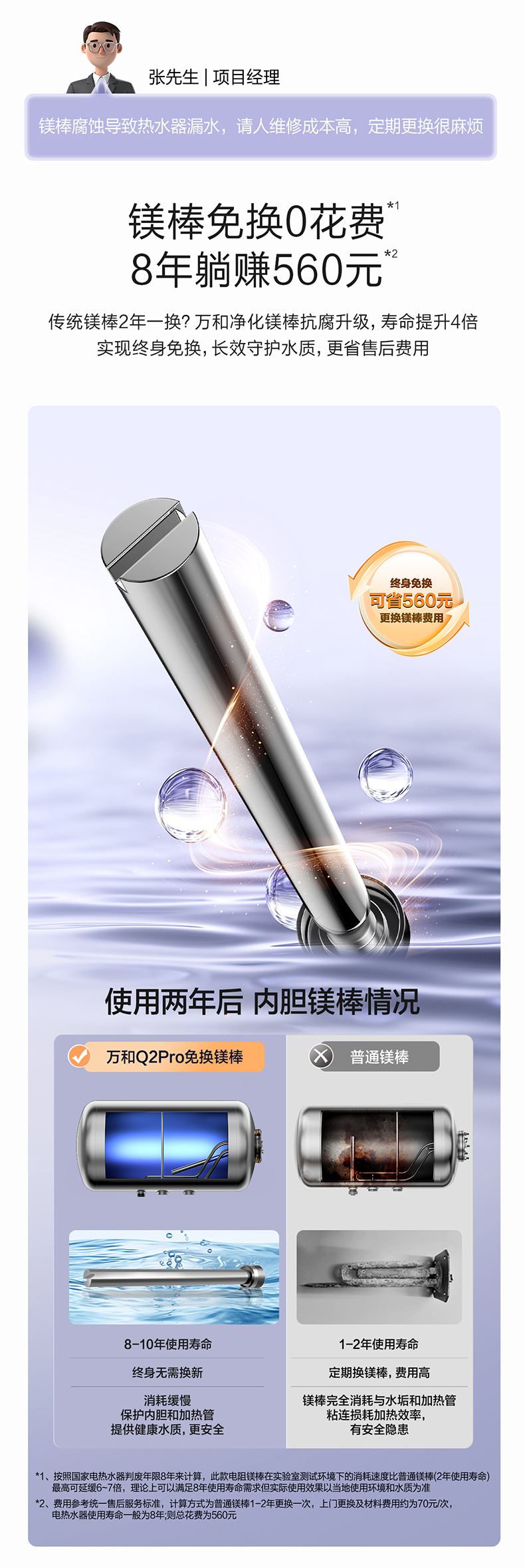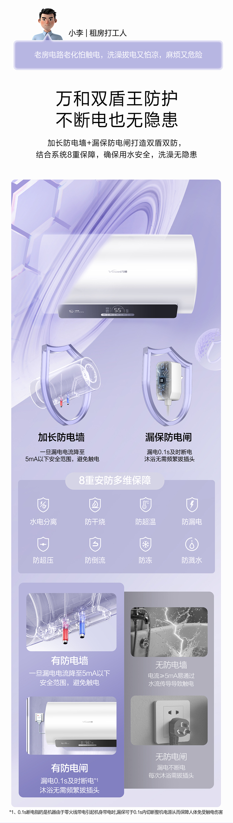 万和 50L/60L 出水断电六重净浴一级能效云互联电热水器Q8D系列