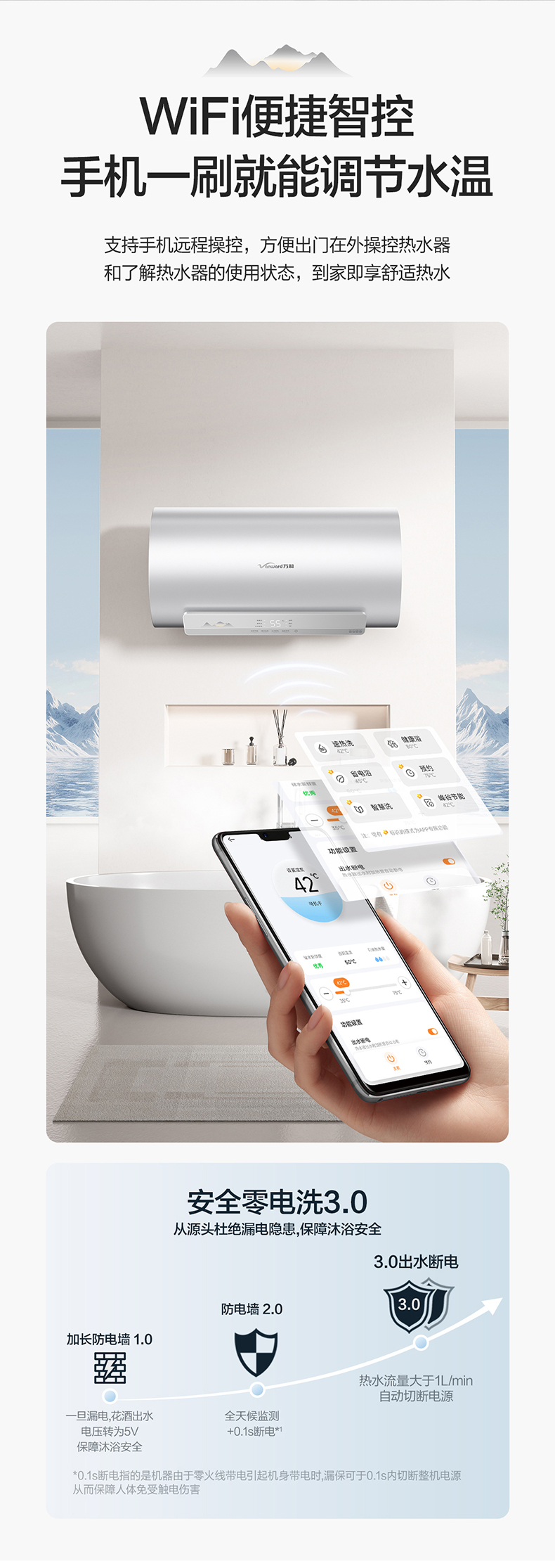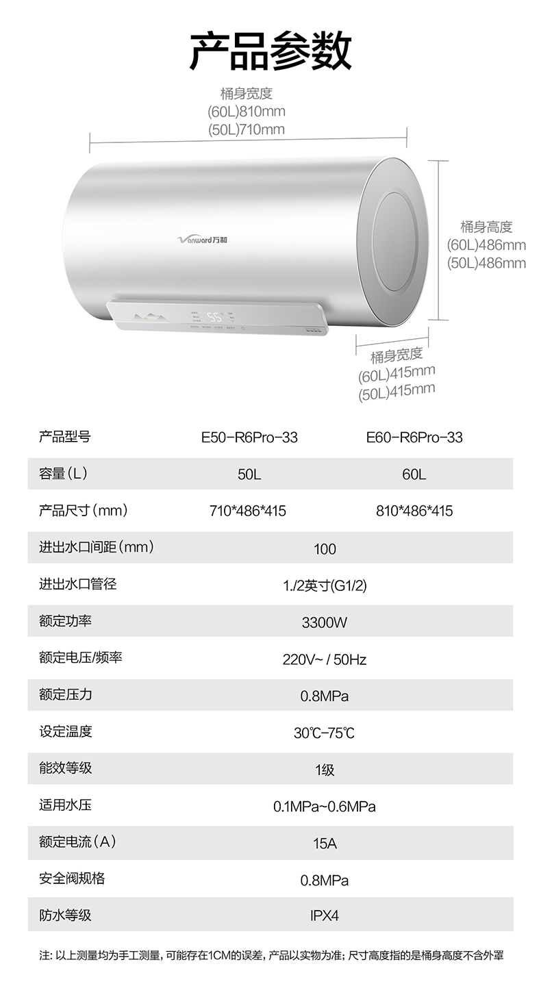 万和 50L/60L 自动断电一键预约洗电热水器Q2TY10系列