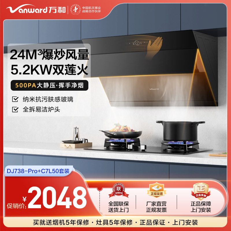 万和 烟灶两件套 烟机DJ738 Pro+燃…