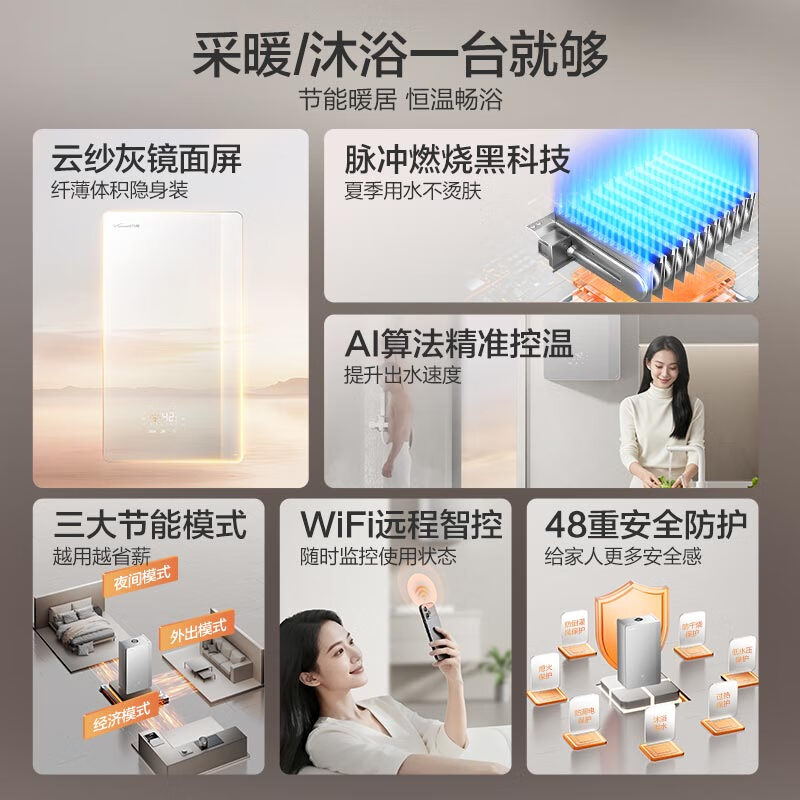 供暖卫浴厨用三合一,精巧小体积,节能省气,APP智控