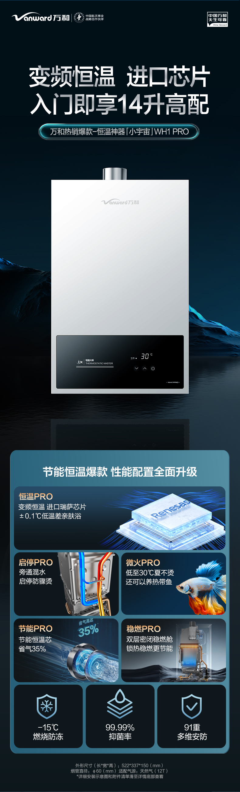 万和 14L 双闭稳燃薄身隐装抑菌净…