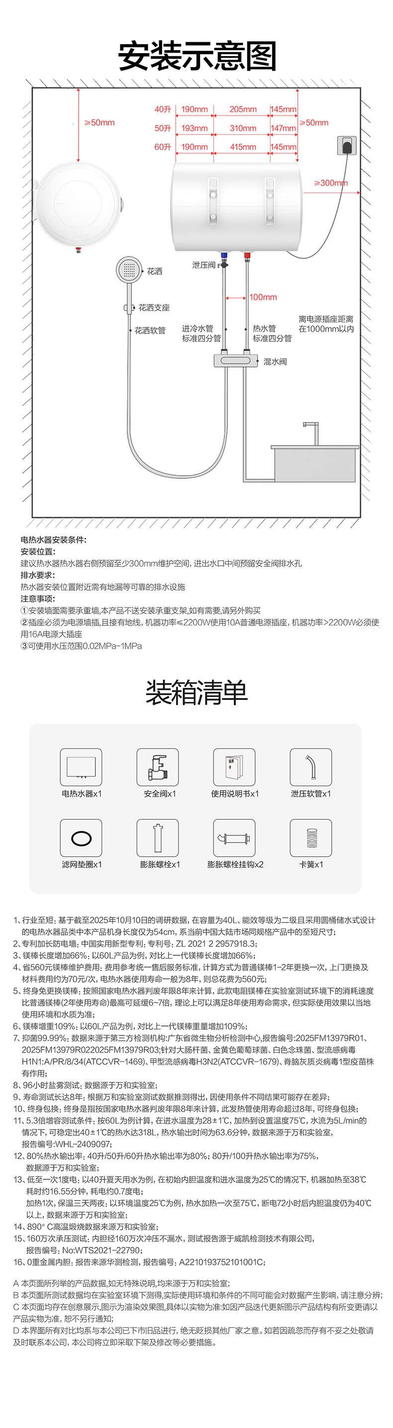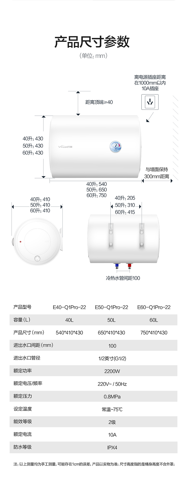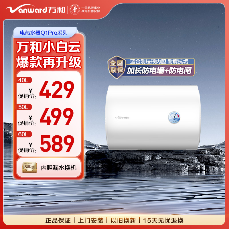 万和 40L/50L/60L 双防电盾储水式电热水器Q1W1系列