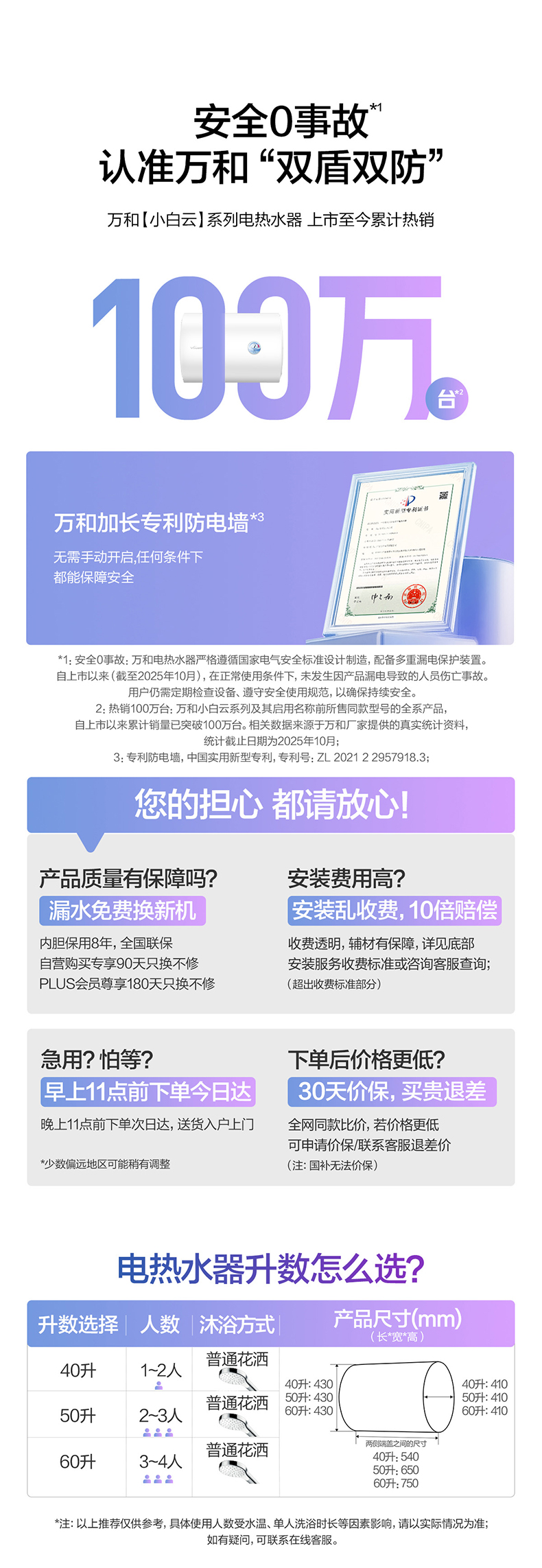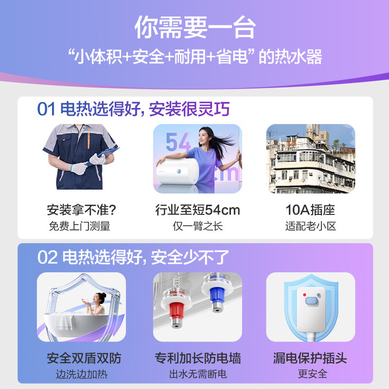 万和 50L/60L 自动断电一键预约洗电热水器Q2TY10系列