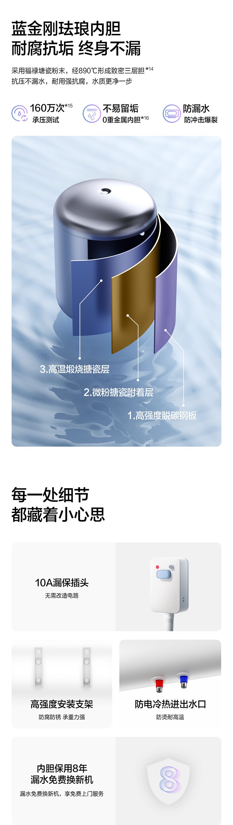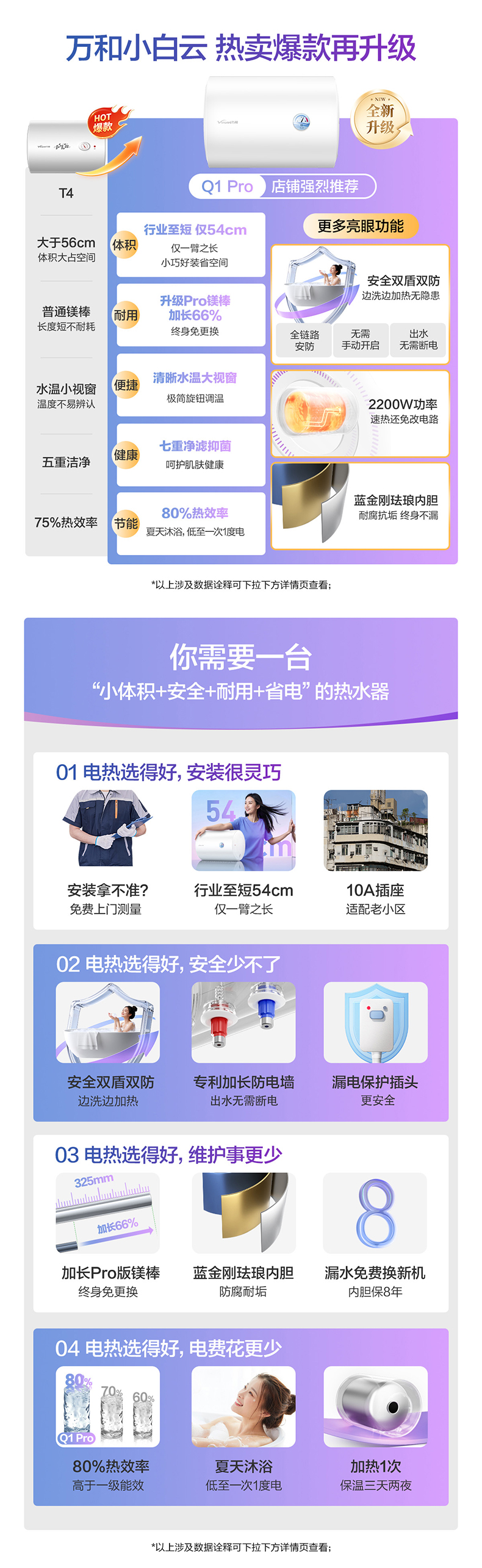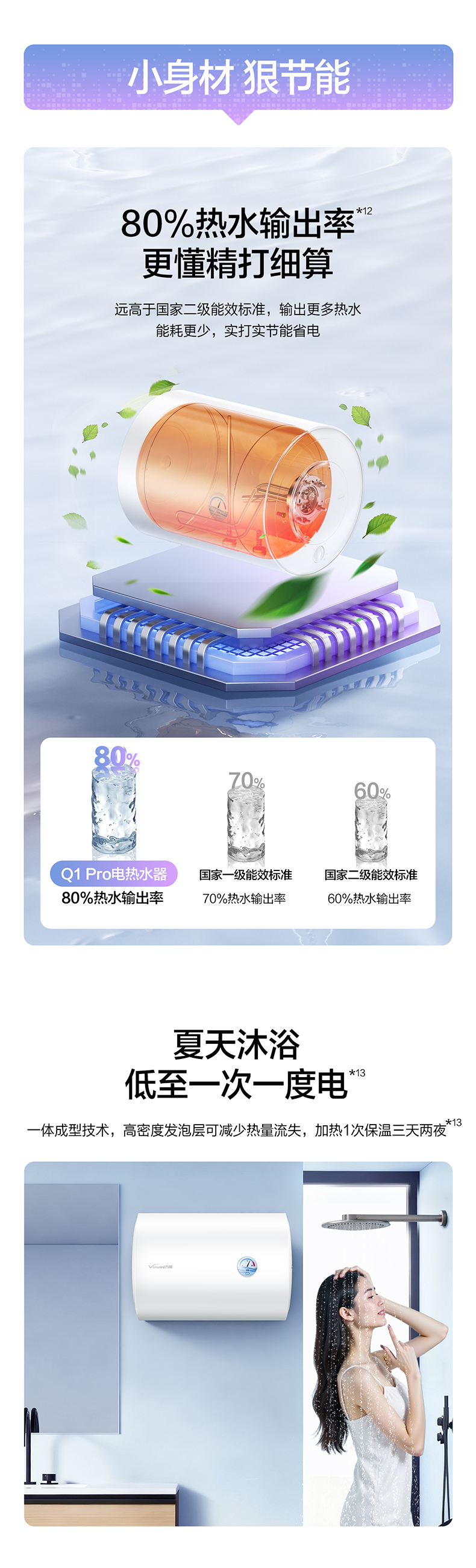 万和 50L/60L 出水断电六重净浴一级能效云互联电热水器Q8D系列