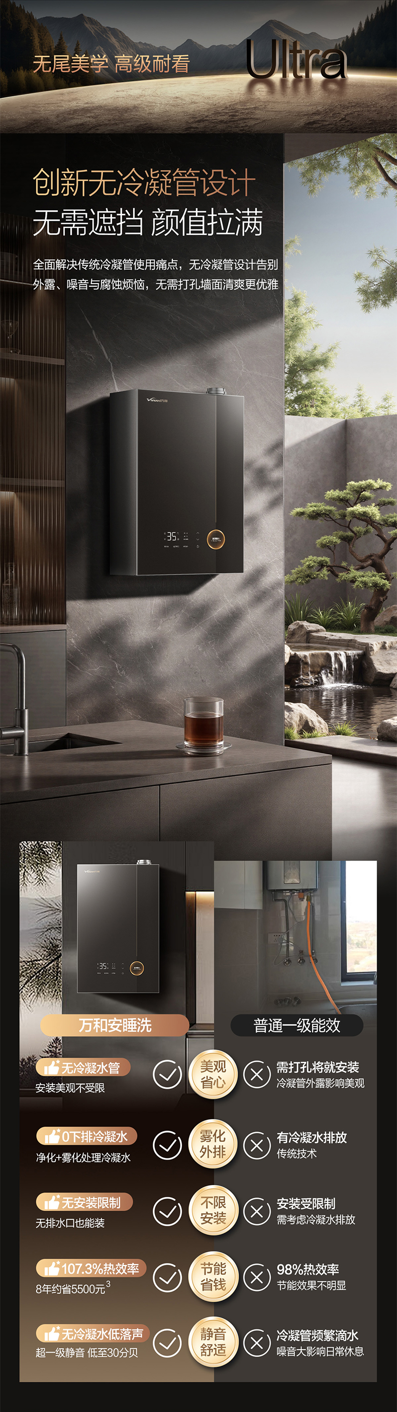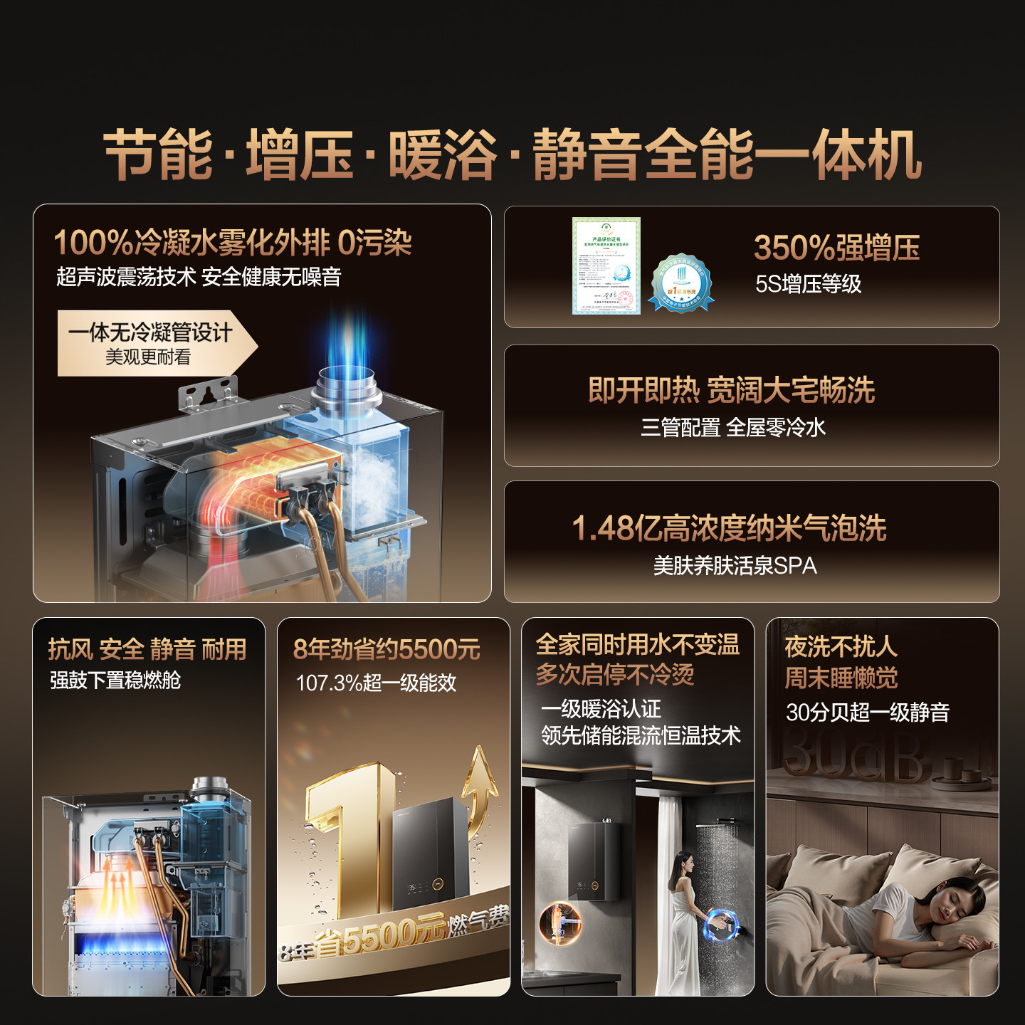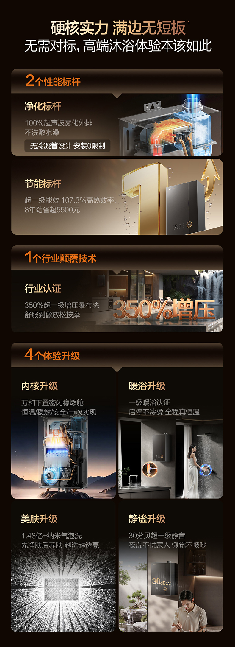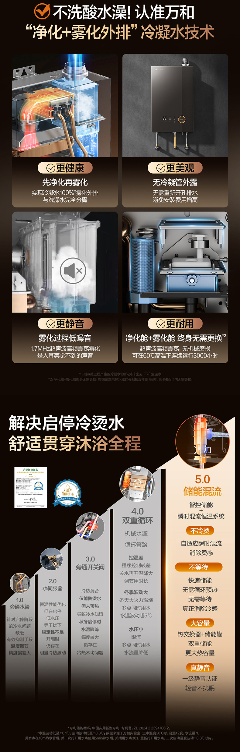 无冷凝水一级能效,增压三管零冷水,一级增压,一级静音