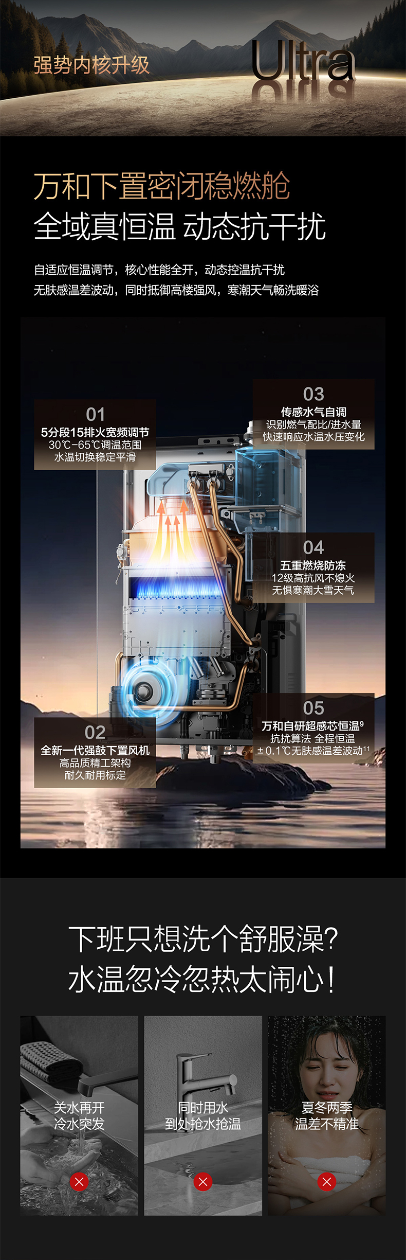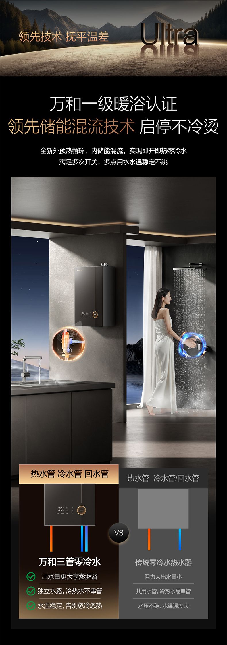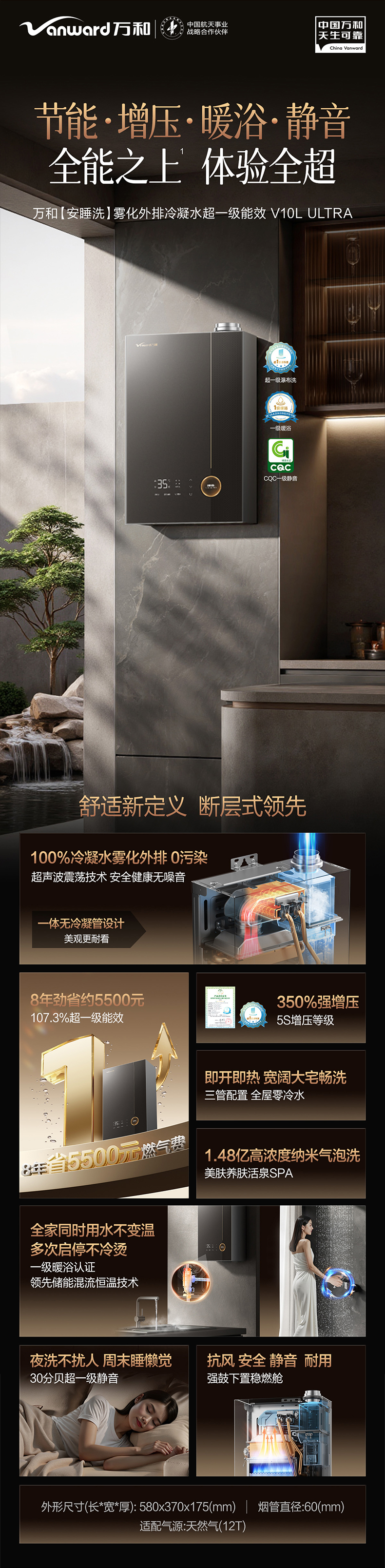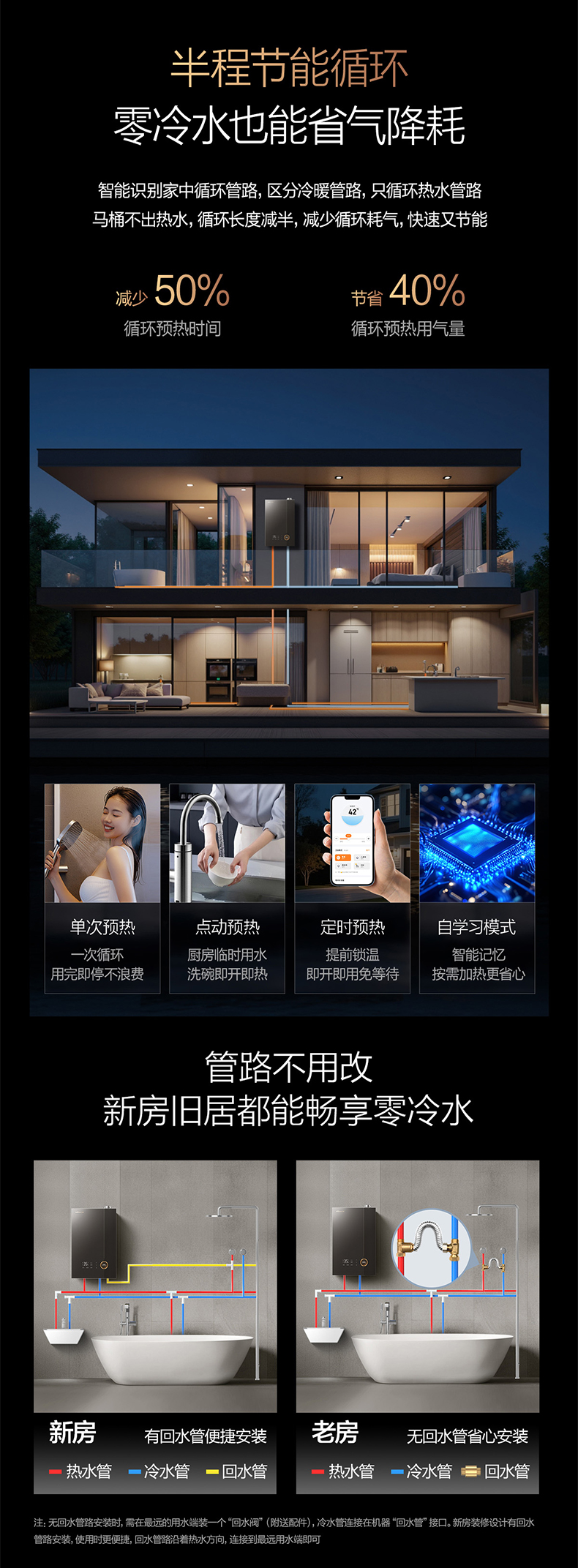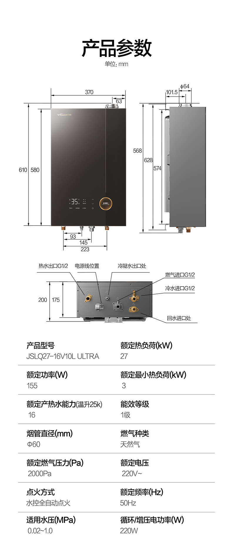 无冷凝水一级能效,增压三管零冷水,一级增压,一级静音